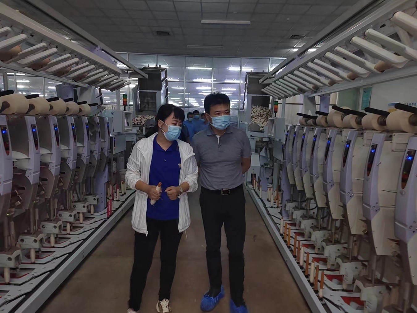 卢刚首先到元首纺织生产车间实地查看了环锭纺、赛络纺、转杯纺等各条生产线生产运行情况,详细了解了公司经营情况和转型升级举措,并对公司的未来发展方向提出积极地建设性意见。