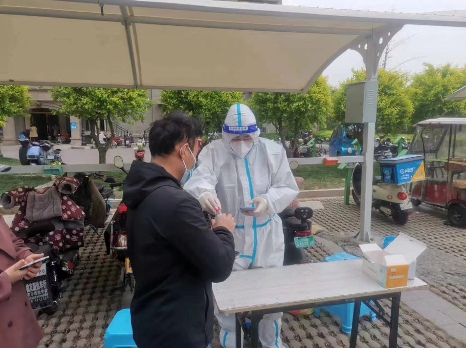 在高新区临港街道十西村,由于位置偏僻,抗疫人手短缺,产发园区集团青年志愿者李振早早前往,与村书记详细了解村庄疫情防控情况,听从村委安排,会同村民防控小组把控村庄主要出入口,严格落实所有人员出行通行时“亮码”“扫码”工作,守护一村安全。
